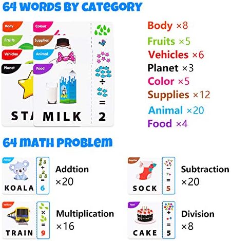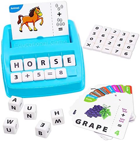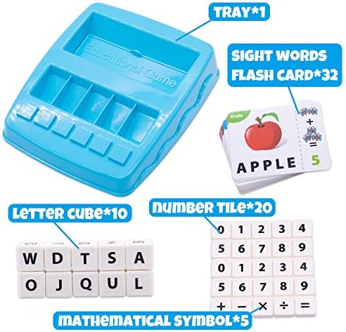 〖Educational Interactive toy〗—While matching letters/numbers or spelling/do sums, parents sound letter/number or words out, kids repeat and gradually strengthen their speech and phonics. 64 words including 18 three-letter words, 24 four-letter words and 22 five-letter words, 64 math problems including 20 addition, 20 subtraction, 16 multiplication and 8 division. Rich learning resources for kids 3 4 5 6 7 8 years old