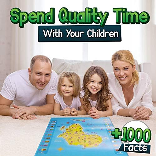FULLY INTERACTIVE – The electronic interactive map can be hung on the wall or laid flat on the floor or table and features full volume control (parents LOVE this) and interactive quizzes that push and challenge your child in a positive way. Talking map requires 3 AAA batteries (not included).